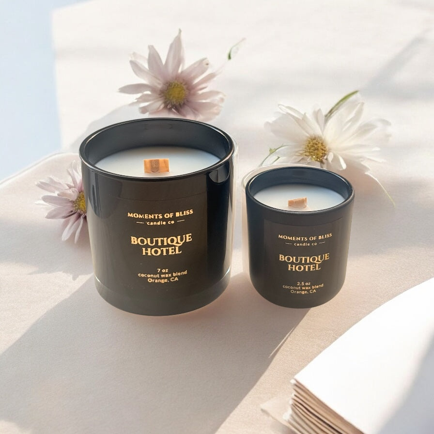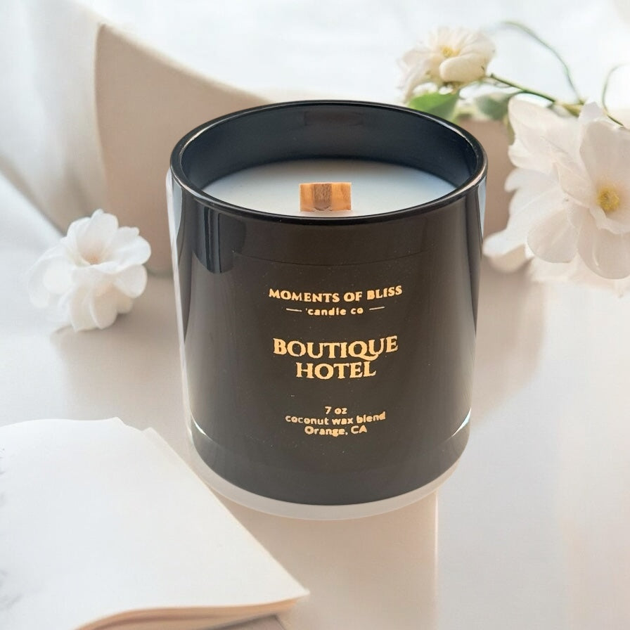 Introducing "Boutique Hotel," a luxurious candle that transports you to the lavish ambiance of a high-end hotel. At its heart, this candle features warm notes of amber and labdanum, which blend together to create a sensuous and luxurious scent, complemented by the refreshing and zesty aroma of bergamot and a subtle yet distinctive touch of spice, cardamom is incorporated, bringing an exotic and aromatic note to the fragrance. The result is a beautifully balanced scent that feels both indulgent and inviting, perfect for setting a relaxed and elegant mood in any room. This candle is a must-have for anyone who appreciates the finer things in life.